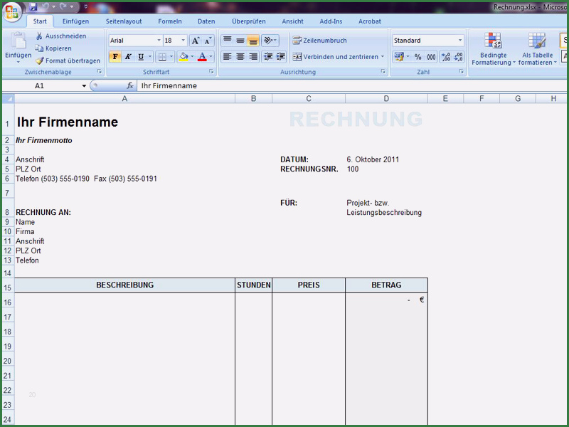 Abrechnung Vorlage Excel Süß Excel Vorlage Rechnung