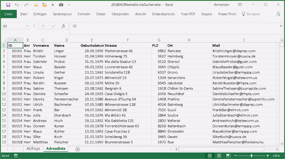 Adressliste Vorlage Pdf Wunderbar Excel Adressabfrage In Separatem Tabellenblatt Pctipp