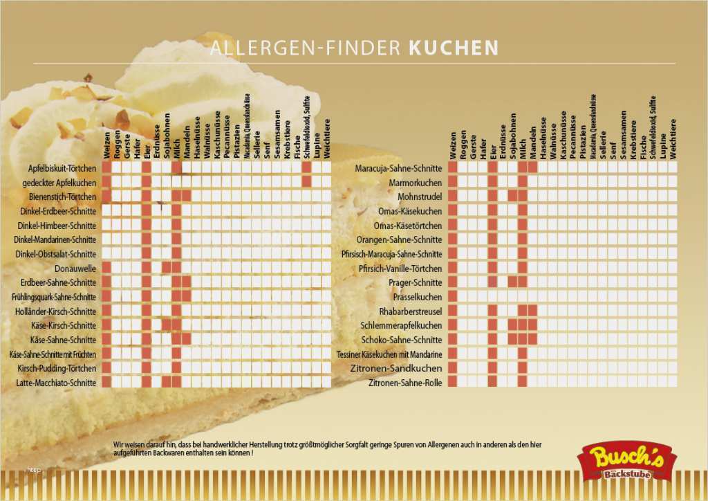 Allergenliste Bäckerei Vorlage Wunderbar Busch S Backstube