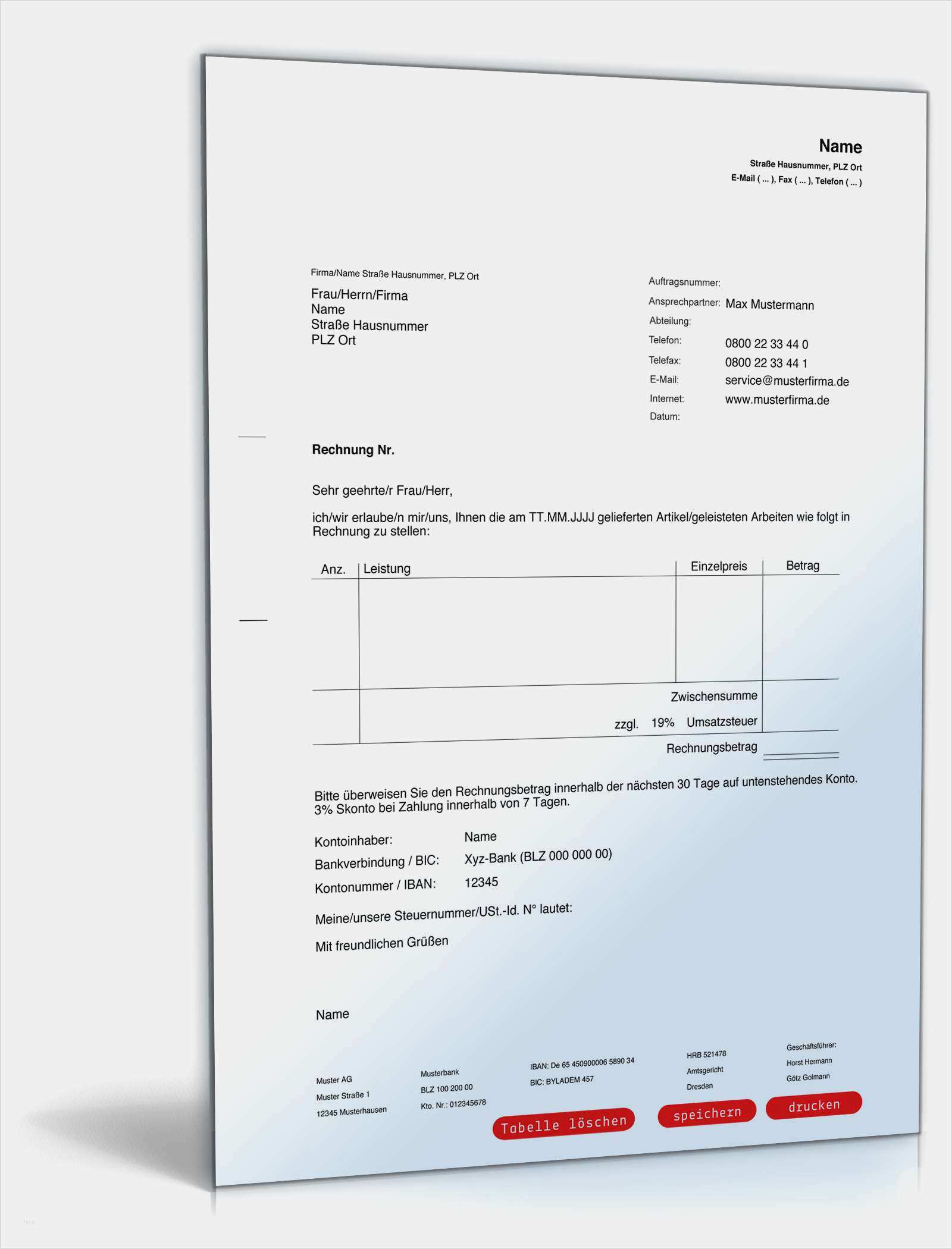 Musterrechnung Kleinunternehmer Word Vorlage Süß Rechnung Inland Editierbares Muster Zum Download
