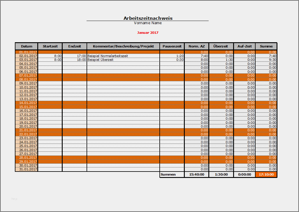 Arbeitszeitnachweis Excel Vorlage Kostenlos Gut Excel Arbeitszeitnachweis Vorlagen 2017