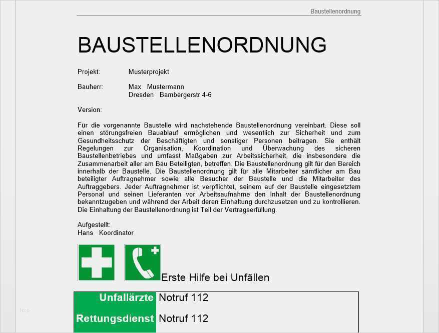 Alle baustellenordnung vorlage