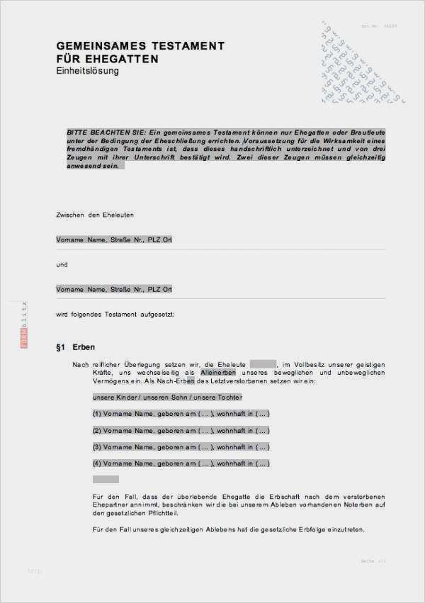Berliner Testament Vorlage Zum Ausdrucken Elegant 60 Wunderbar Testament Vorlage Pdf Foto