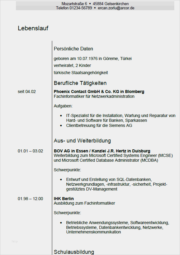 Falls Sie sich im Lebensgeschichte befinden, bringen Sie echt in Schwierigkeiten geraten und sogar Ihre Karriere gefährdet werden. Lebensgeschichte ist darüber hinaus übereinkommen Bundesländern auch denn Lebenslauf bekannt. Curriculum Vitae ist ein ein- , alternativ zweiseitiges Zeugnis, das jeder Ihre persönlichen Daten, Kontaktdaten, Ausbildung, Qualifikationen, Fähigkeiten, Fähigkeiten, Arbeitserfahrung, Erfolge und Erfolge hervorhebt. bewerbung informatiker vorlage