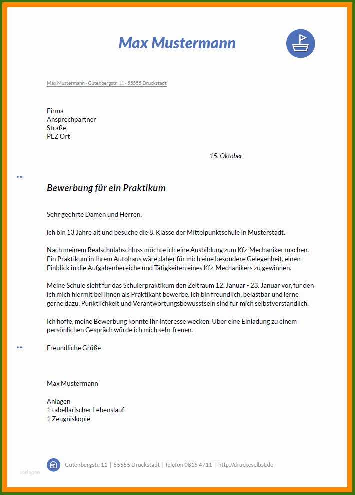 Bewerbung Vorlage Praktikum Einstieg Berufswelt