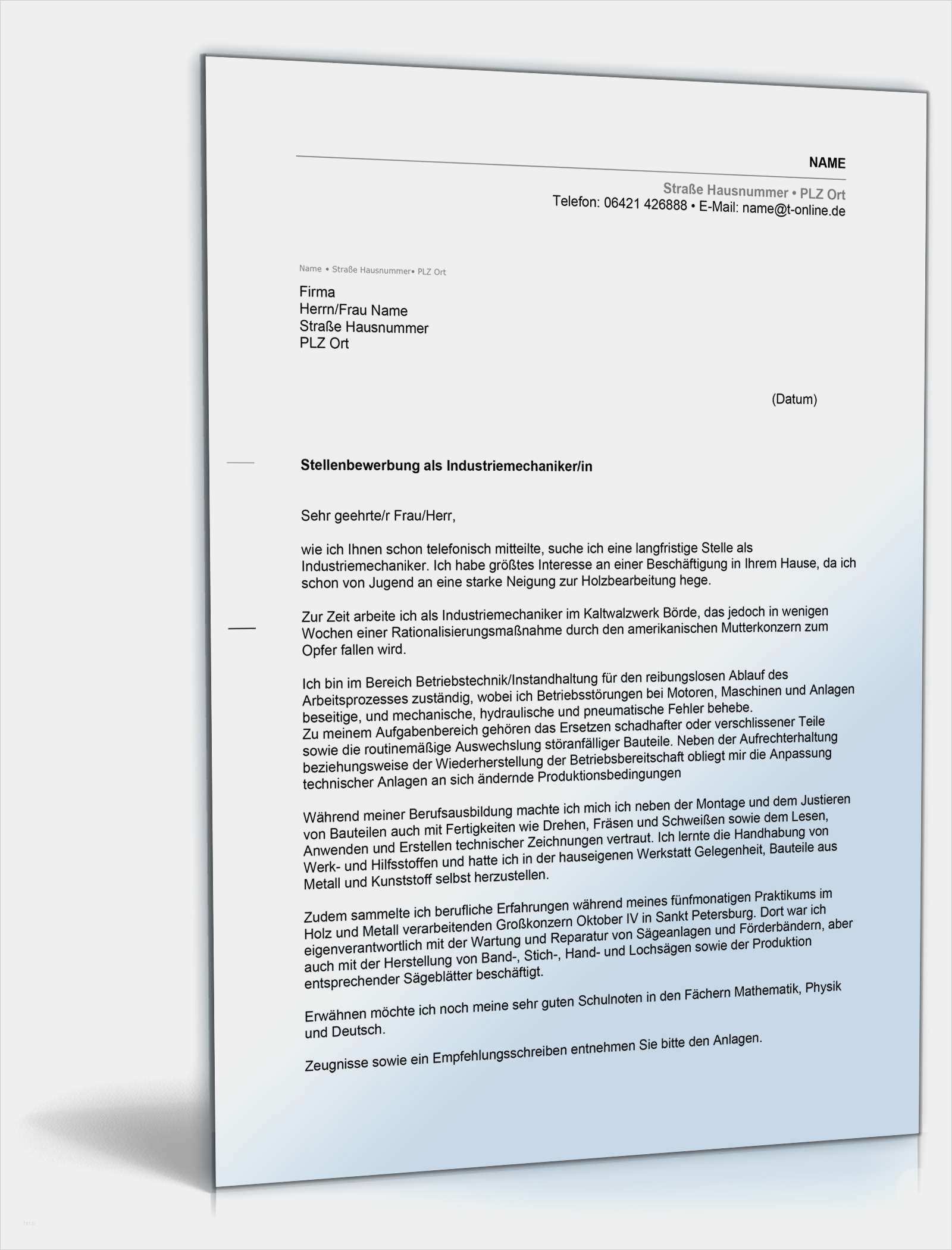 Galerie von Bewerbungsschreiben Vorlage Industriemechaniker Hübsch Anschreiben Bewerbung Industriemechaniker