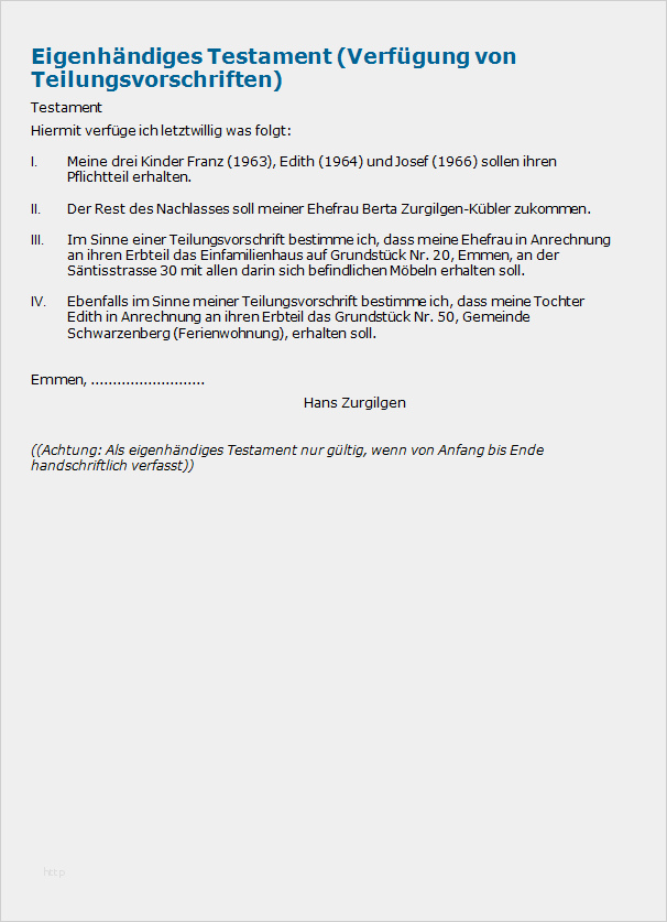 Galerie von Testament Vorlage Word Fabelhaft Eigenhändiges Testament Teilungsvorschriften Muster Zum