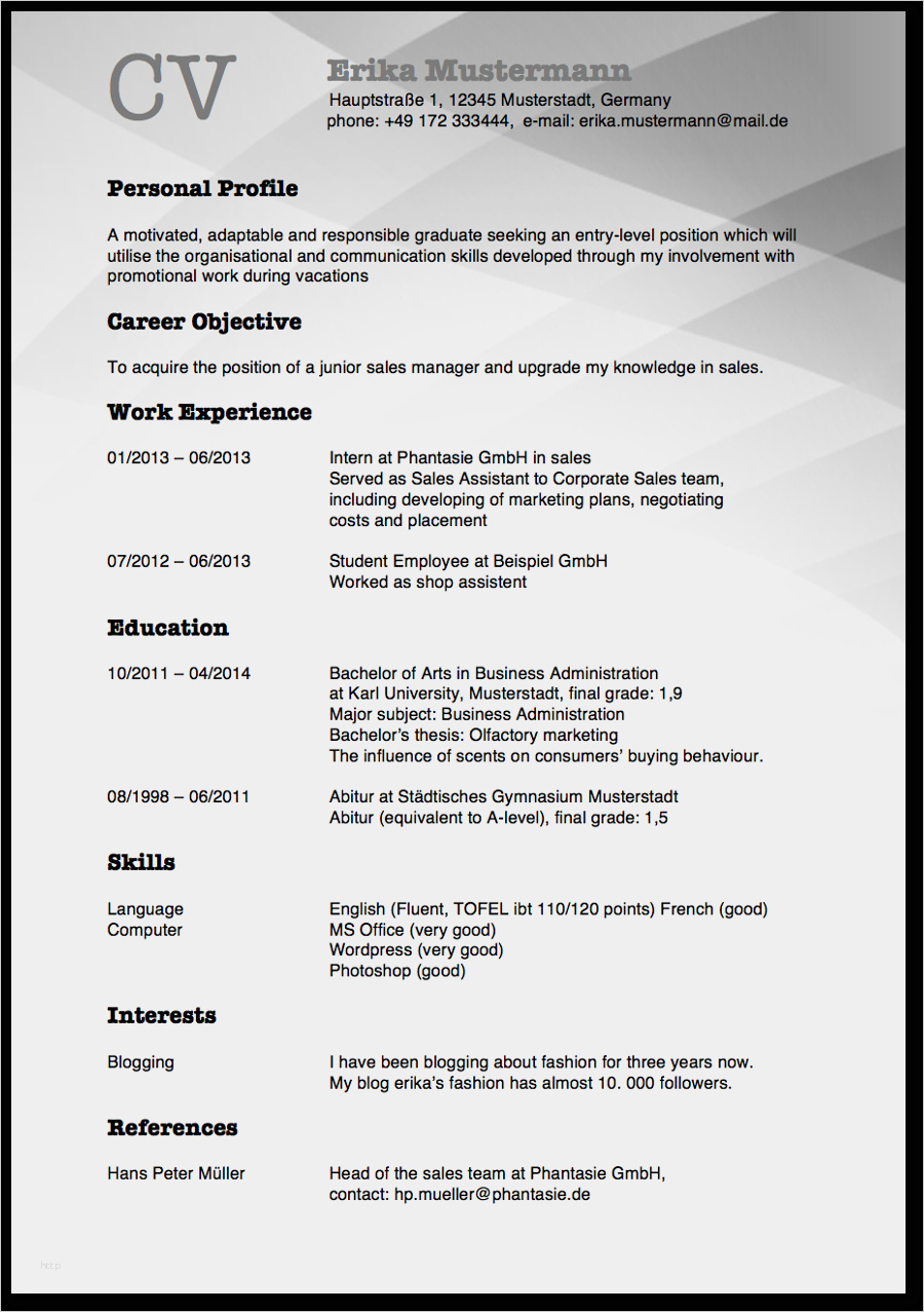 geben Ihnen die Freiheit, an dem beliebigen Ebene anzuhalten und die Arbeit dann an deinem Punkt fortzusetzen, an dem Jene aufgehört haben, um herauf dem richtigen Weg über bleiben. Lebenslaufvorlagen können von Profis handgeschrieben oder unkompliziert von einer Internetauftritt heruntergeladen werden. Sie können eine gratis spezifische Lebenslaufvorlage herunterladen, die für Den richtig ausgestellten Arbeitsbereich geeignet ist, oder Hunderte von seiten Beispielen und einen kleinen Preis herunterladen.