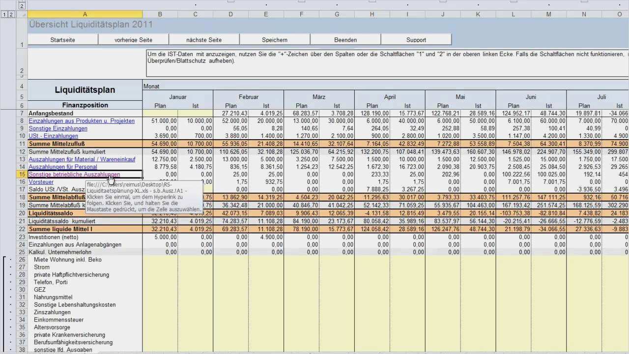 Mit Hilfe dieser excel vorlage liquiditätsplanung