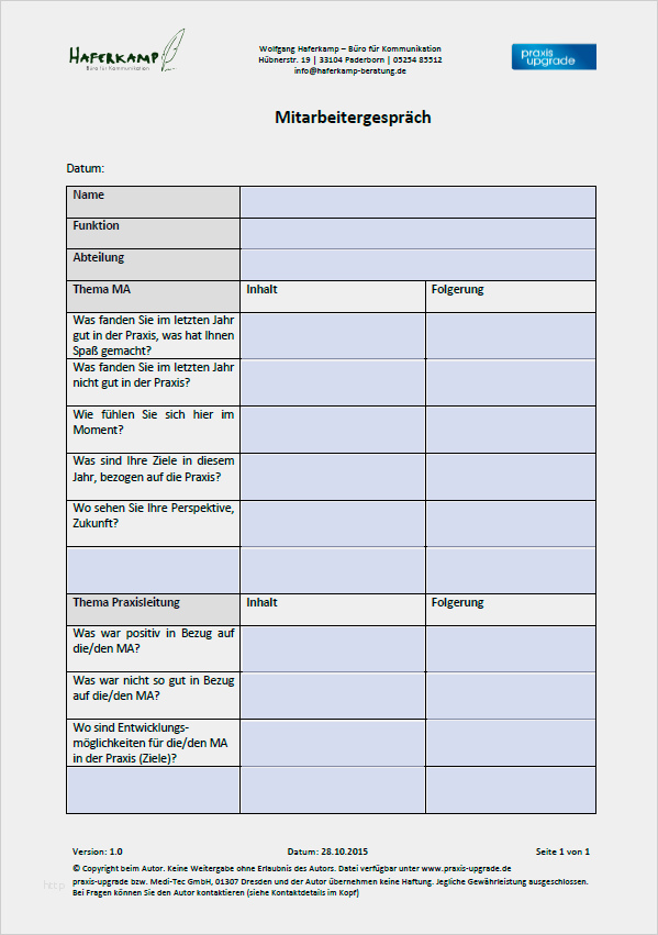 Dokumentation Mitarbeitergespräch Vorlage Wunderbar Vorlagen Praxis Upgrade