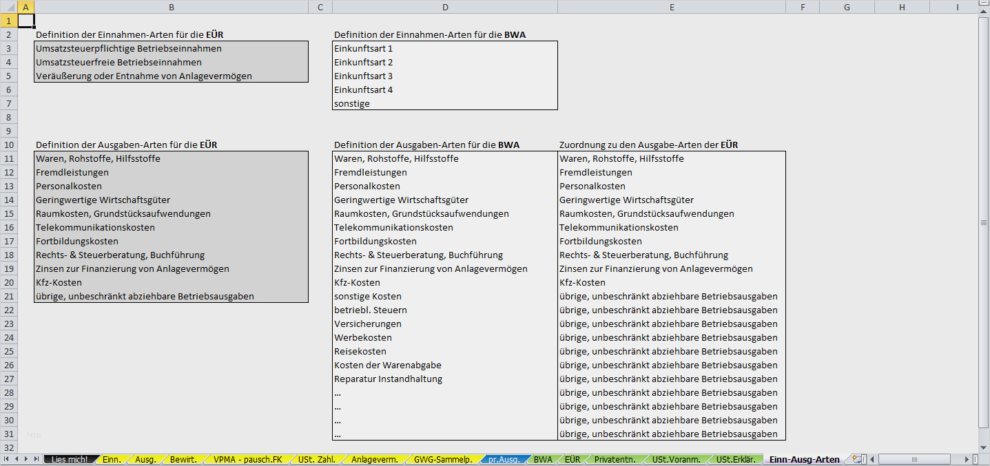 Die einnahmenüberschussrechnung kleinunternehmer vorlage