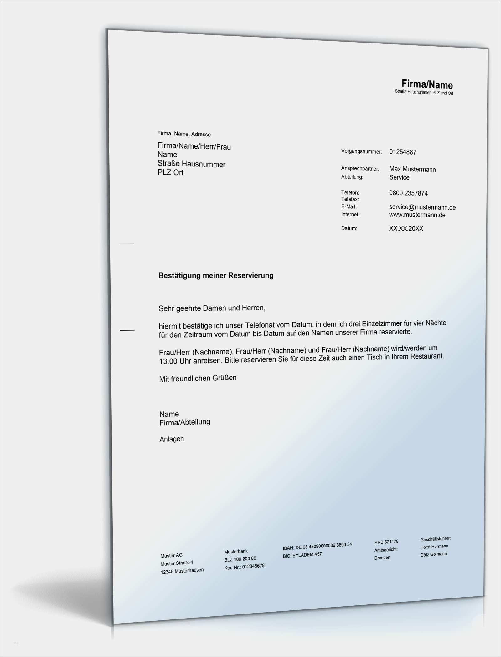 Reservierung Hotel Vorlage Elegant Bestätigung Einer Zimmerreservierung • De Musterbrief Download