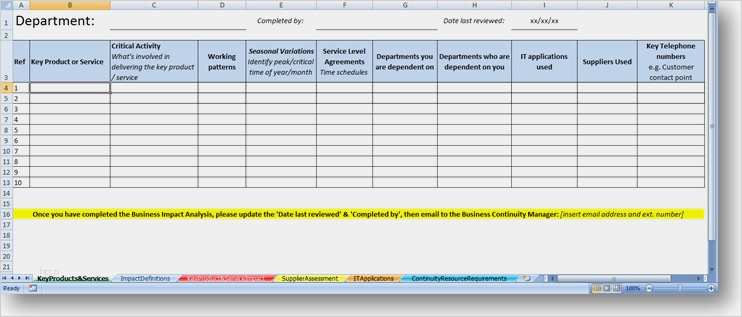 Vorlage Lose Excel Gut Business Impact Analysis Template the Continuity Advisor