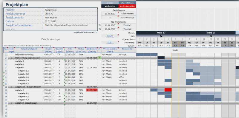 Die excel projektplan vorlage