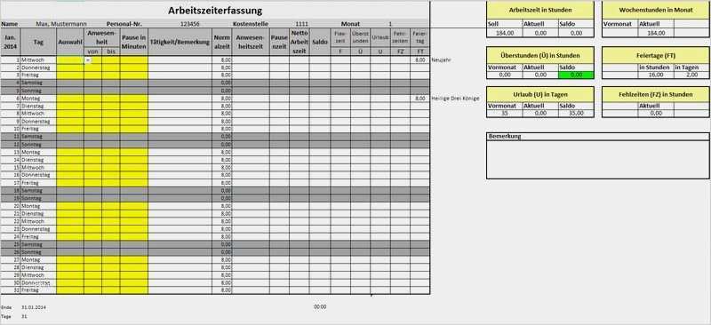 Galerie von Excel Tabelle Zeiterfassung Vorlage Inspiration Arbeitszeiterfassungsvorlage Für Microsoft Excel Stefan