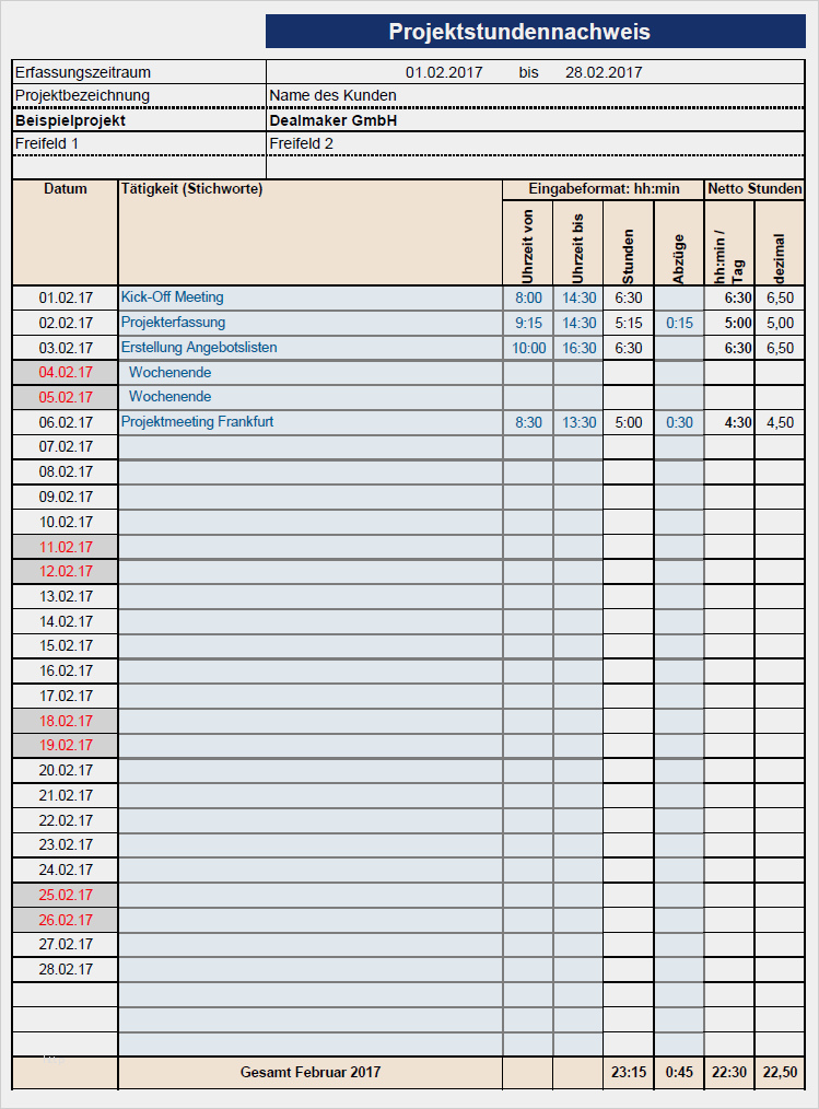 Excel Vorlagen Kostenaufstellung Gut Projektzeiterfassung In Excel sofort Download