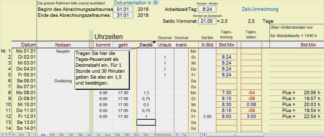 Excel Zeiterfassung Vorlage 2018 Großartig Excel Zeiterfassung 2018 Stundenkonto Arbeitszeitkonto