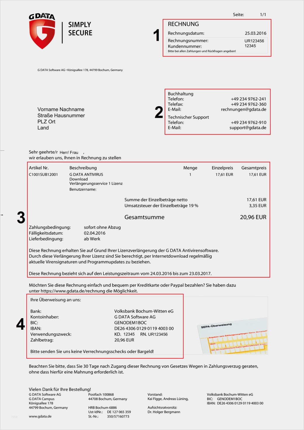 Gdata Kündigung Vorlage Elegant Ihre G Data Rechnung