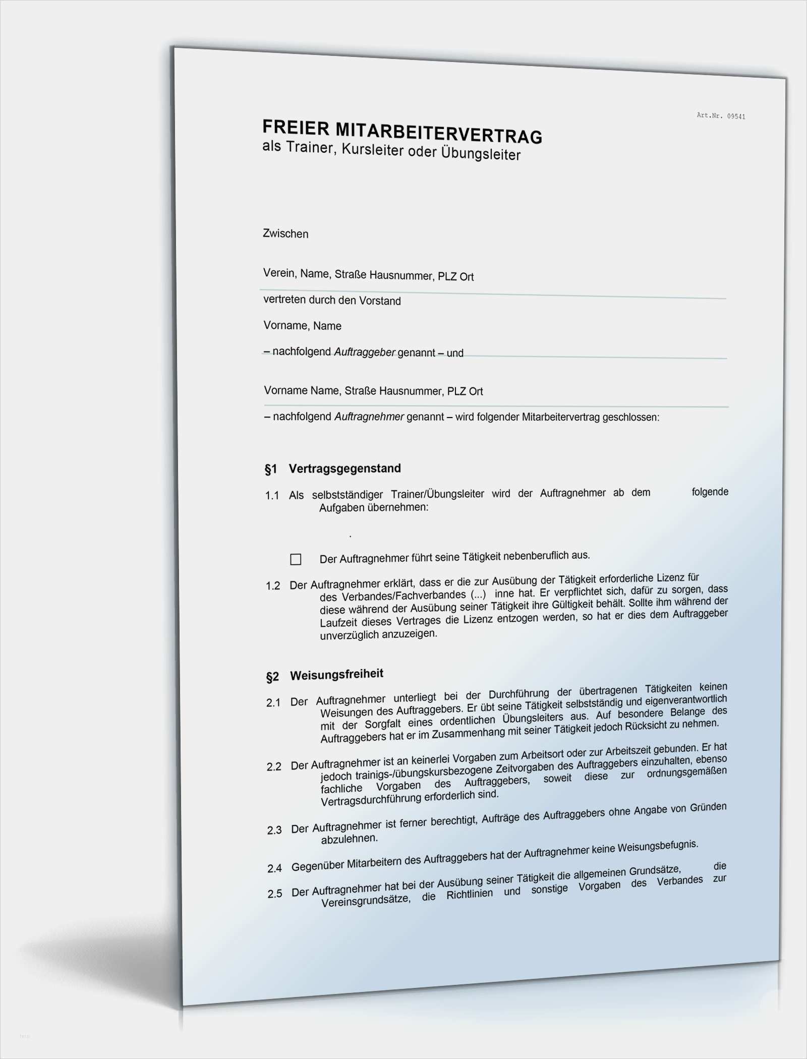 Projektvertrag Vorlage Angenehm Vertrag Mit Einem Trainer Kursleiter Oder Übungsleiter