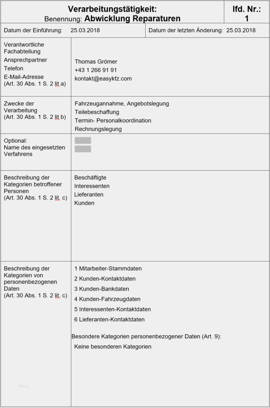 Auskunft Personenbezogene Daten Vorlage Dsgvo Inspiration Verarbeitungsverzeichnis Für Werkstätten Dsgvo Easykfz
