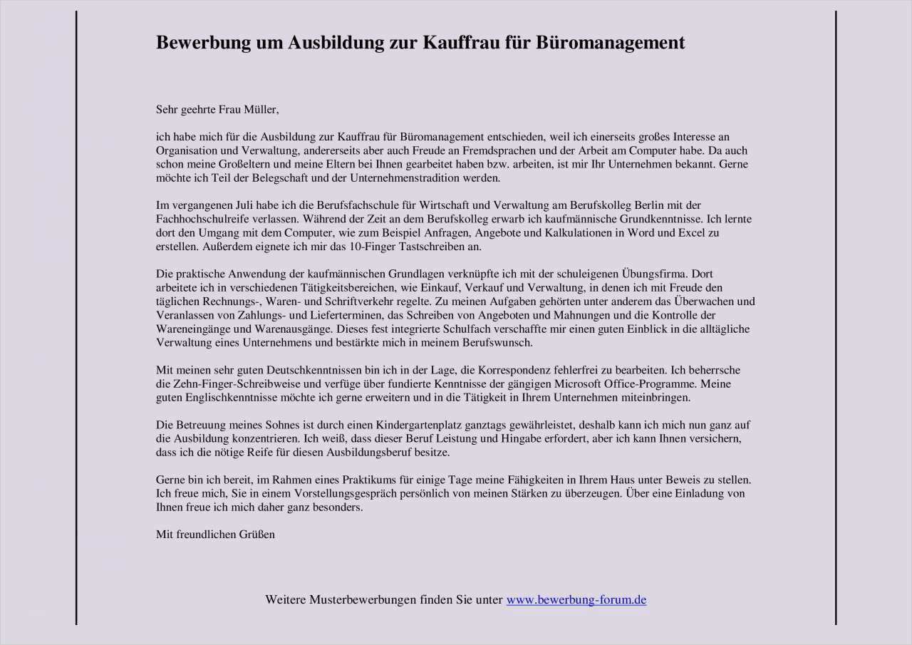 Vorlage Bewerbung Kaufmann Für Büromanagement Neu Anschreiben Bewerbung Kaufmann