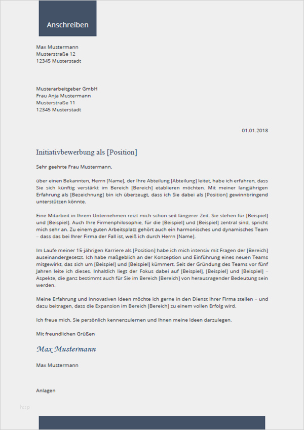 Initiativbewerbung Schreiben Vorlage Angenehm Initiativbewerbung
