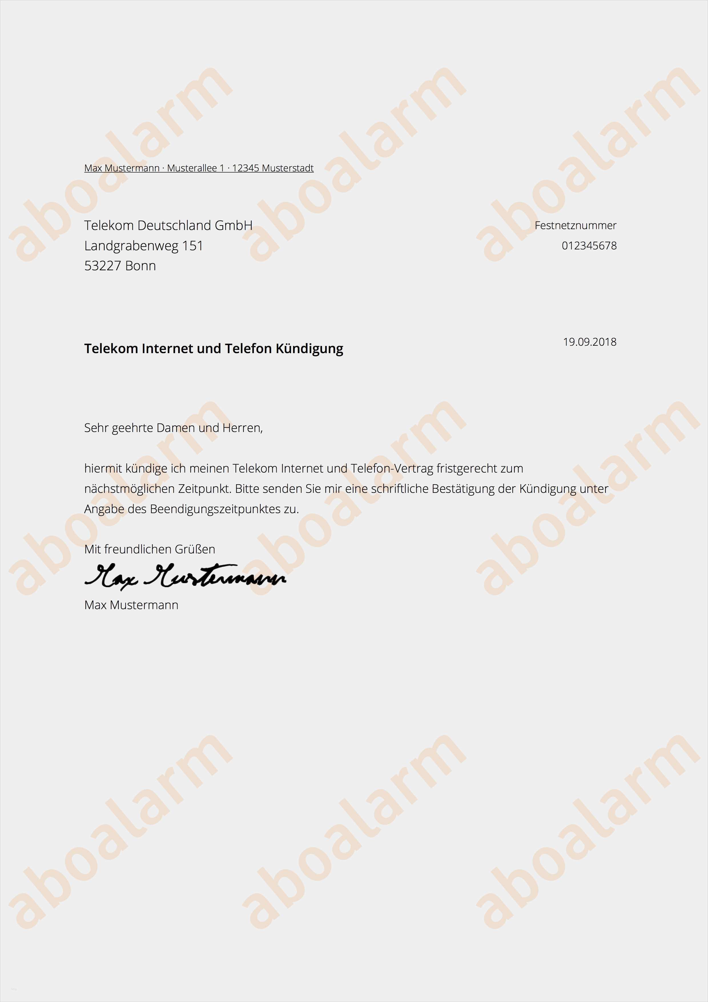 Kündigungsschreiben Vorlage Festnetz Süß Telekom Online Kündigen