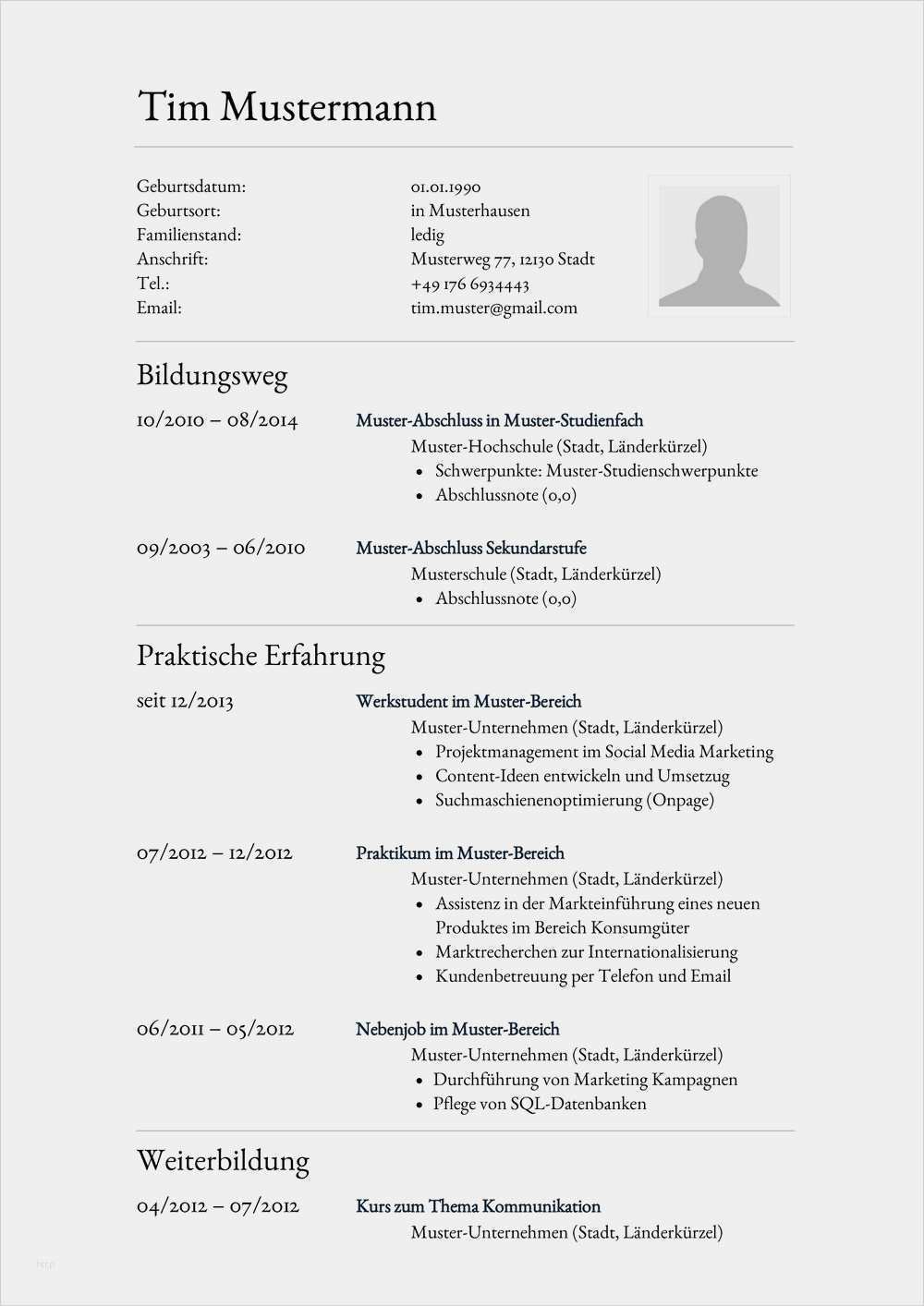 Wenn Sie sich vom Lebensgeschichte befinden, können Sie echt darüber hinaus Schwierigkeiten geraten und sogar Ihre Karriere gefährdet werden. Biographie ist darüber hinaus einigen Bundesländern auch denn Lebenslauf bekannt. Curriculum Vitae ist ein ein- , alternativ zweiseitiges Dokument, das jeder Die persönlichen Daten, Kontaktdaten, Ausbildung, Qualifikationen, Fähigkeiten, Fähigkeiten, Arbeitserfahrung, Erfolge und Erfolge hervorhebt. lebenslauf bewerbung vorlage
