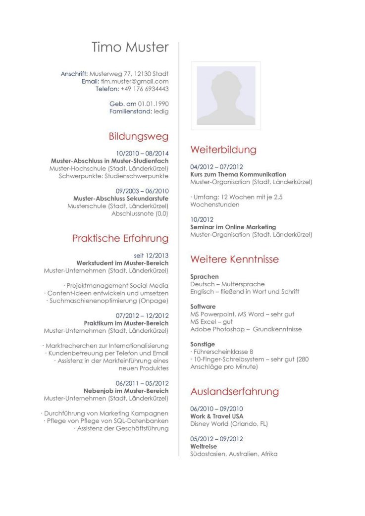 Lebenslauf Muster mit Bild für einen professionellen Einstieg in Ihre Karriere