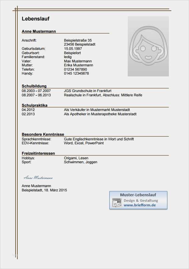 Galerie von Lebenslauf Vorlage Word Ausbildung Süß Lebenslauf Ausbildung Muster Lebenslauf Beispiel