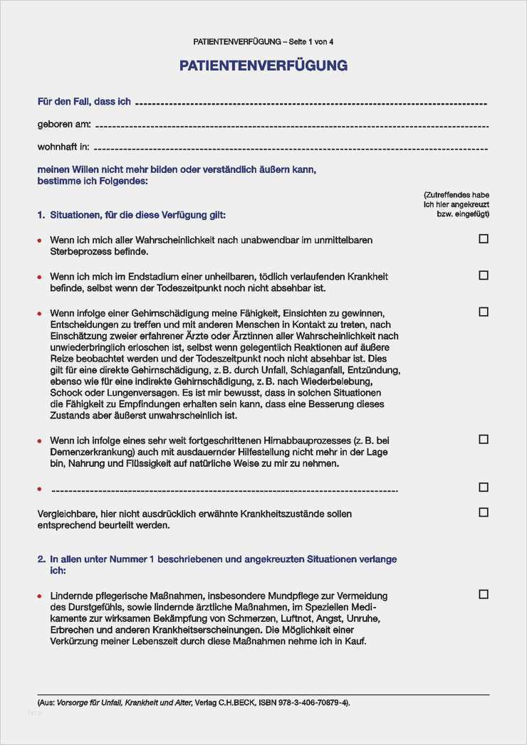 Patientenverfügung Vorlage Ausdrucken Schönste Patientenverfuegung Zum Ausdrucken
