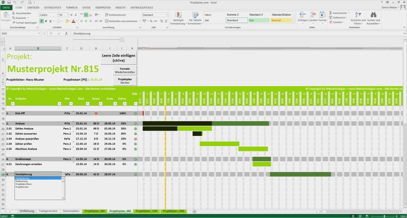 Ihre projektplan gantt diagramm excel vorlage