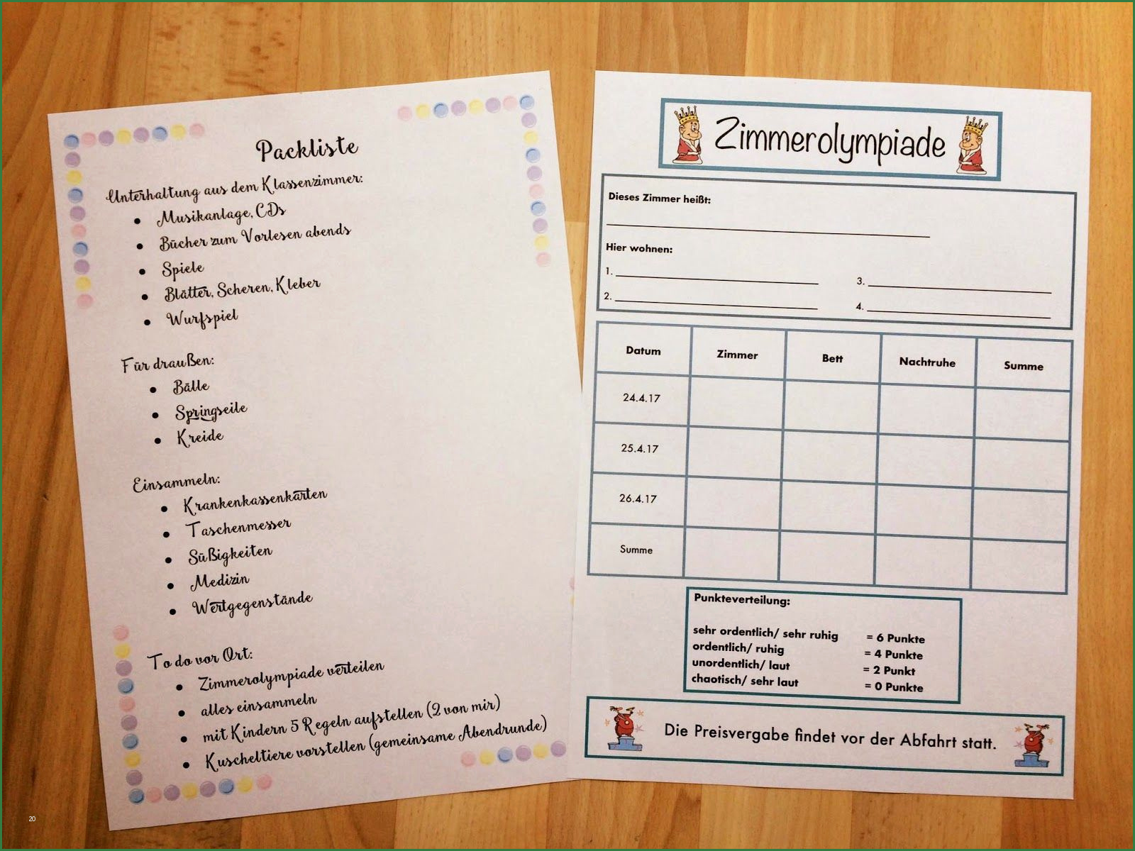 Klassenfahrt To do Liste und Zimmerolympiade part of the Reisetagebuch klassenfahrt vorlage
