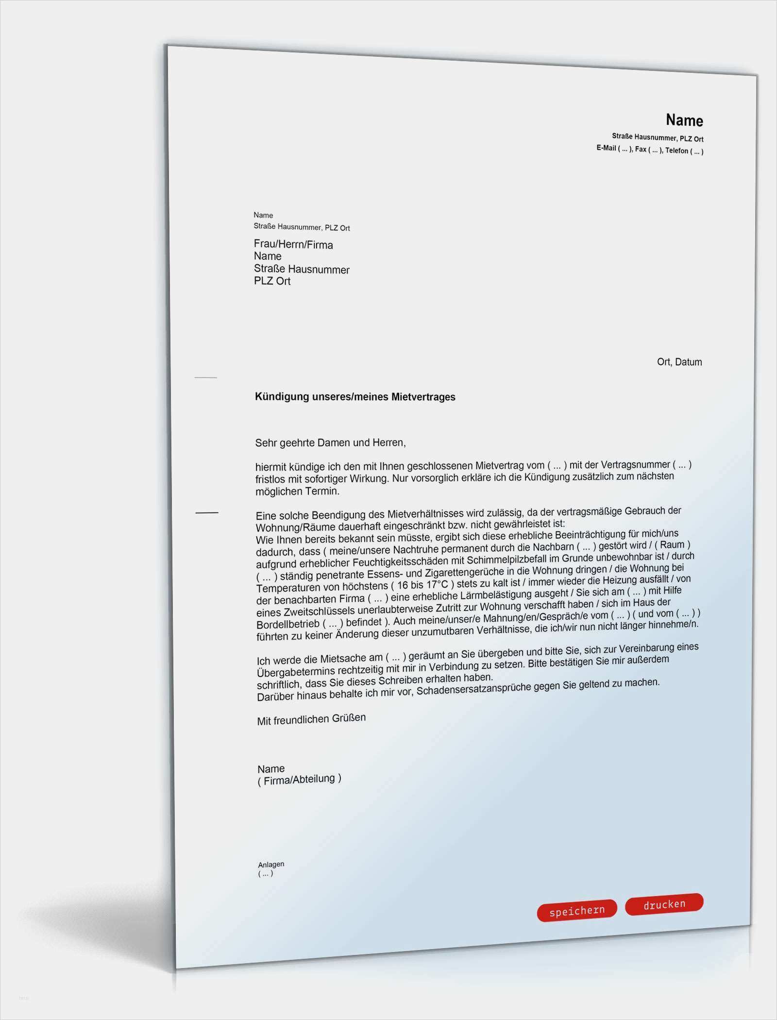 Simply Kündigen Vorlage Cool Kündigung Mietvertrag Fristlos Mieter Muster Vorlage