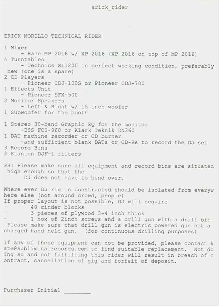 Technical Rider Dj Vorlage Schönste Hobby Heimwerker Erick Morillo Technical Rider