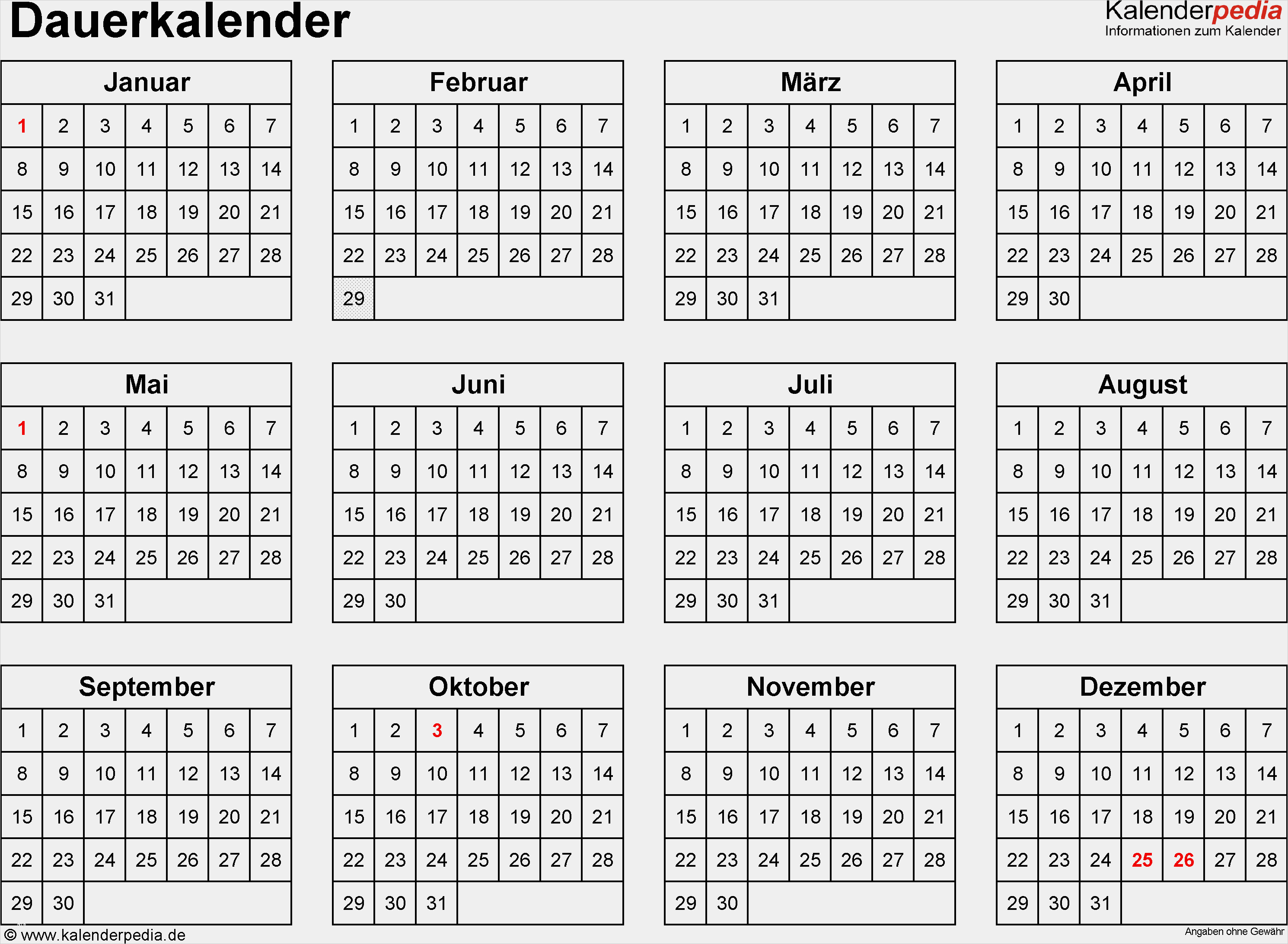 Terminkalender Excel Vorlage Gut Dauerkalender Immerwährender Kalender In Excel Zum
