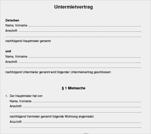 Falls Sie noch nie eine untermietvertrag pdf vorlage