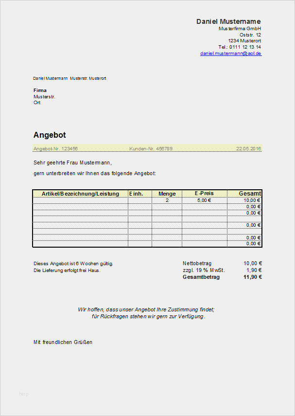 Vorlage Angebot Excel Süß Excel Kostenlose Angebotsvorlagen Fice Lernen