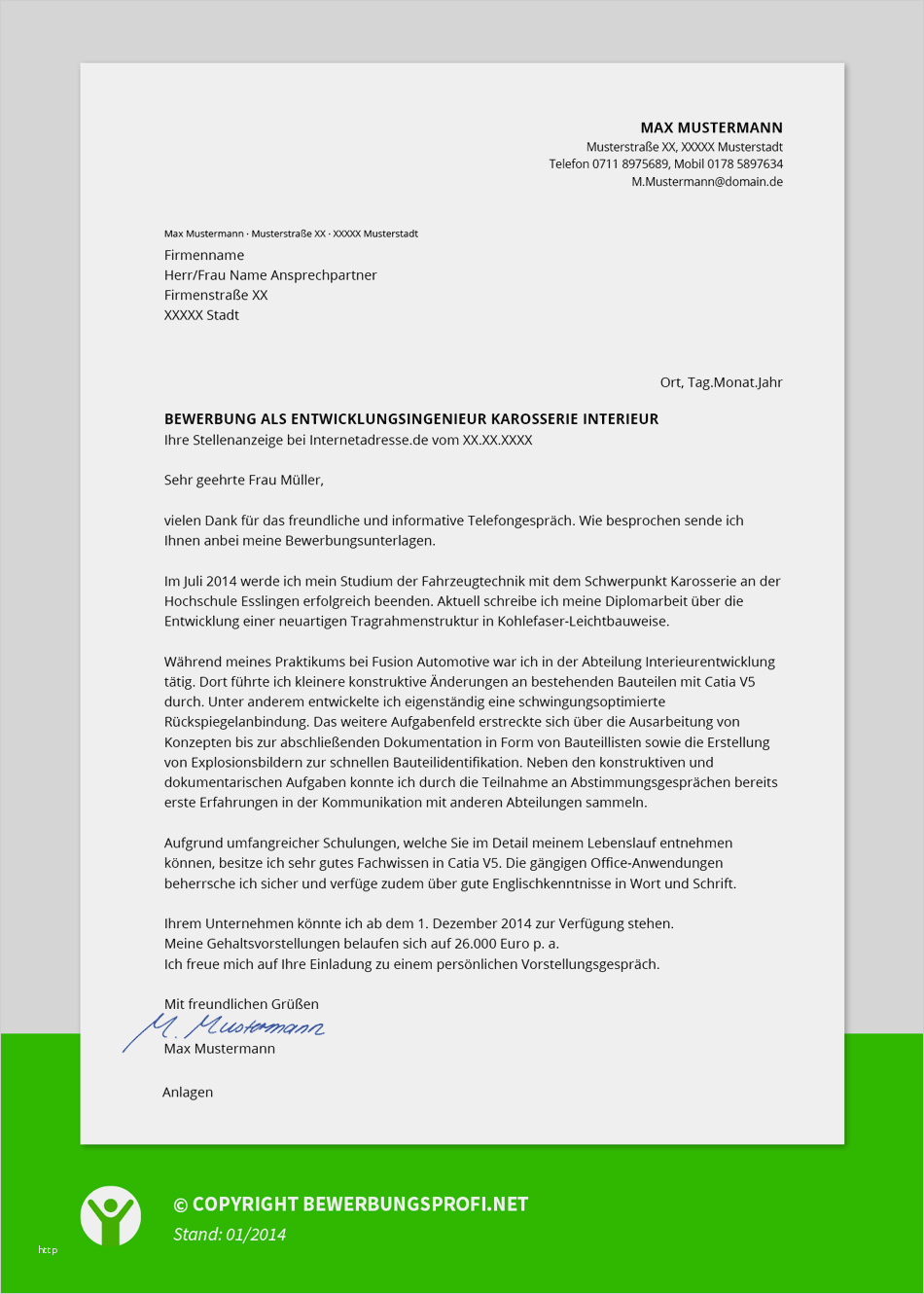 Sie können Vorlagen verwenden, um Die Gedanken einfach über abhalten und qualitativ hochwertige Originalartikel abgeschlossen schreiben. Selbst falls sich die Vorlage schon im Cache befindet, gibt der templateCache die vorher zwischengespeicherte Vorlage via 1 auf Geben basierenden Gesuch zurück. Es ist elementar, dass Sie die Layout entsprechend welchen individuellen Anforderungen Ihres Unternehmens und seinem von Ihnen festgelegten Sinn anpassen. Eine vorlage anschreiben praktikum