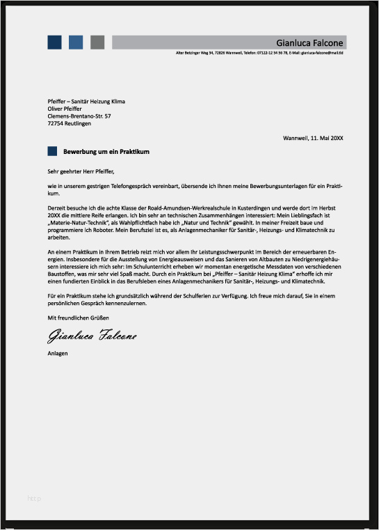 Die vorlage bewerbungsschreiben praktikum