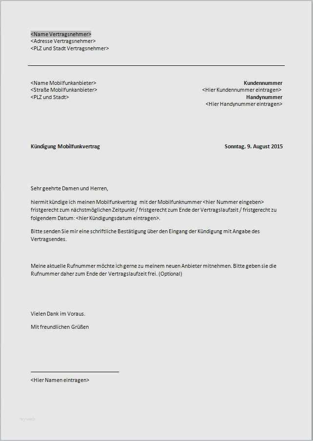 Galerie von Vorlage Kündigung Handyvertrag Word Erstaunlich 15 Kündigung Vorlage Word