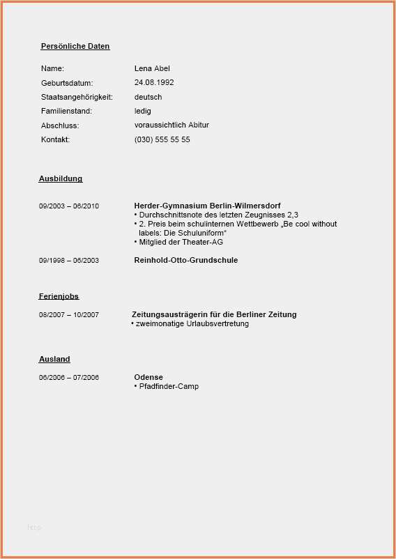 Vorlage Lebenslauf Schüler Elegant Lebenslauf Vorlage Praktikum 9 Klasse 5 Lebenslauf
