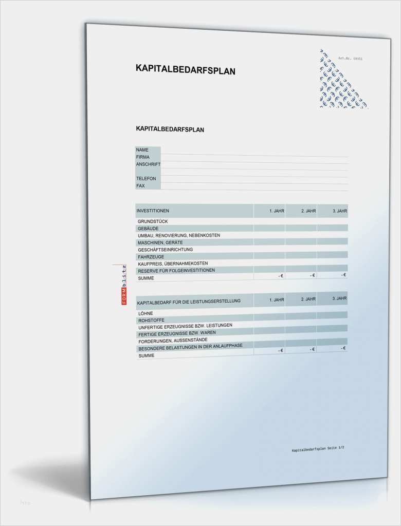Werbetexte Kostenlos Vorlagen Einzigartig Kapitalbedarfsplan Für Existenzgründer
