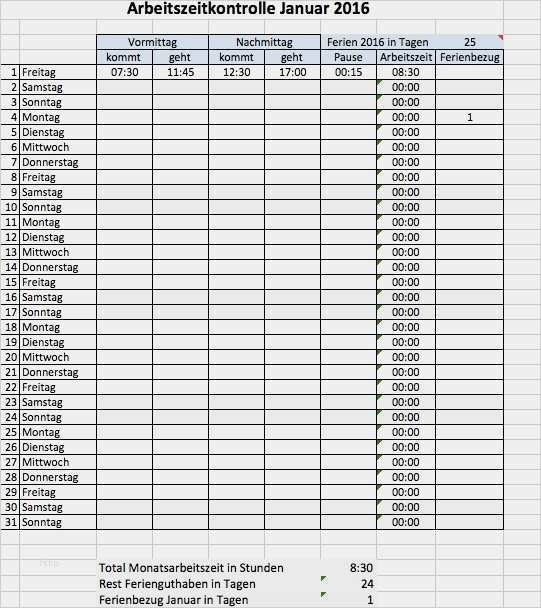 Die zeiterfassung excel vorlage